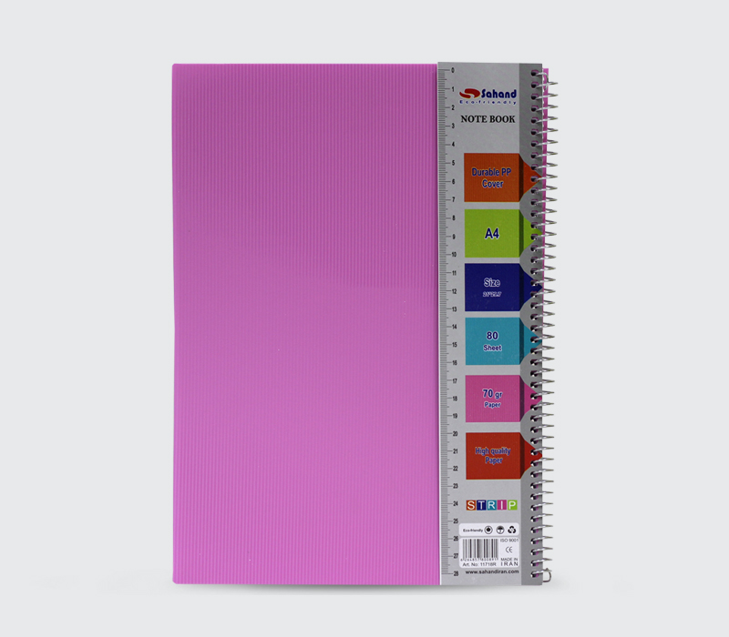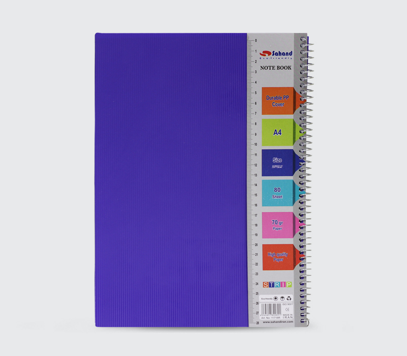 قطع دفتری که اینجا در حال معرفیاش هستیم A4 و تعداد برگهای آن ۸۰ تاست. ابعاد این دفتر از دفترهای تمرین معمولی بزرگتر است و میتوانید از آن برای درسهایی که تمرینات طولانی دارند استفاده کنید. به دلیل قطع بزرگتر، تعداد برگهای این دفتر ۸۰ تا در نظر گرفته شده تا زیادی سنگین و جابهجایی آن سخت نباشد.