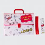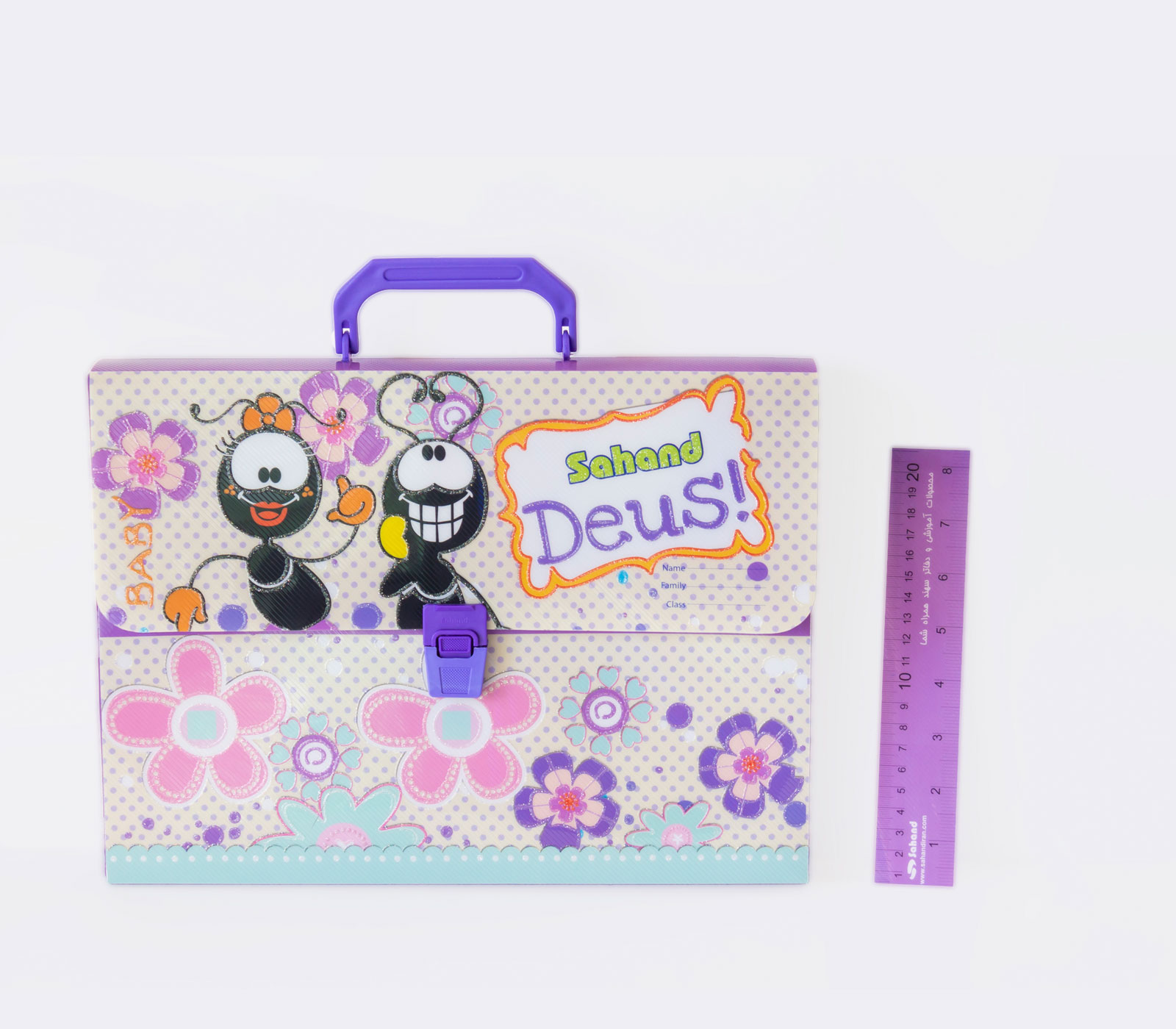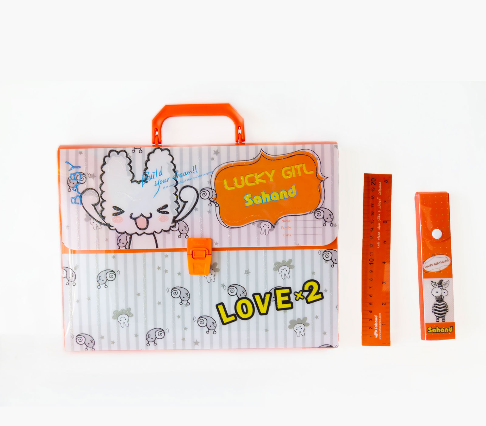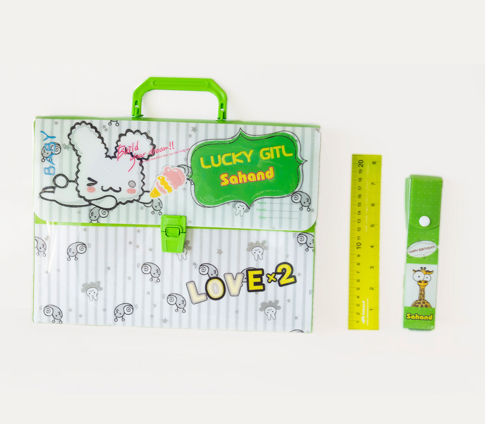 کیف مهد طرح دار مات با جامدادی و خط کش